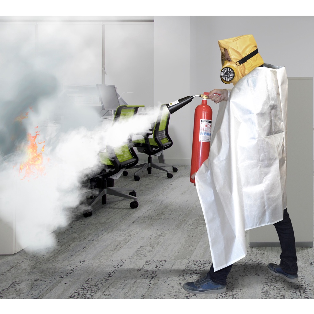 - Kết hợp với mặt nạ cứu hỏa, áo choàng tạo lớp bảo vệ toàn diện, giảm nguy cơ bị bỏng hoặc hít phải khí độc.