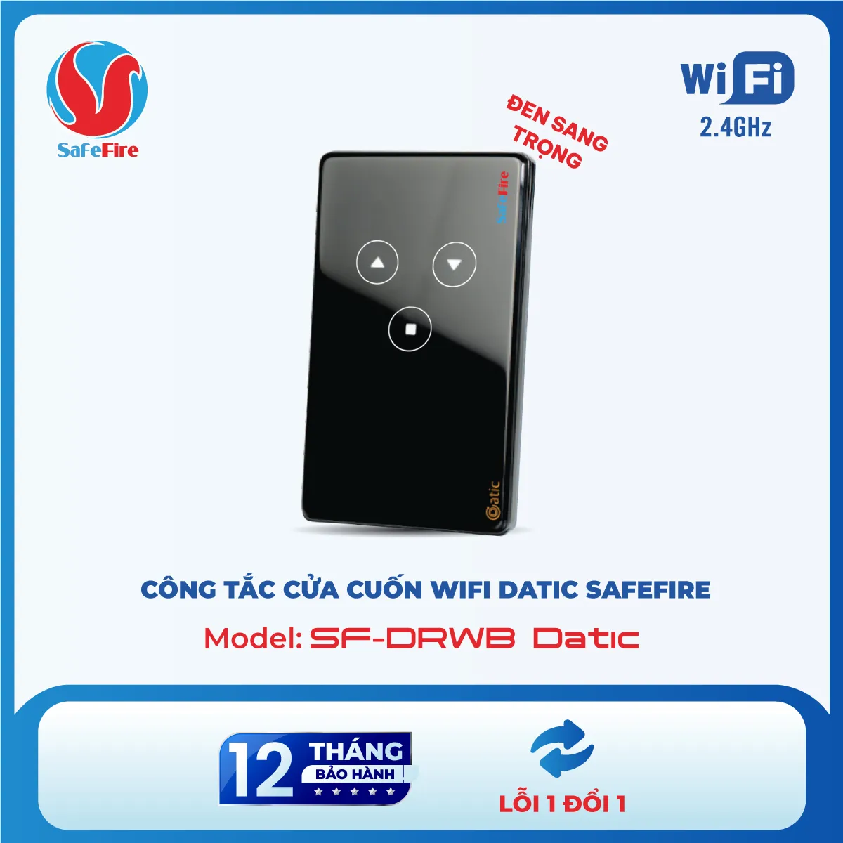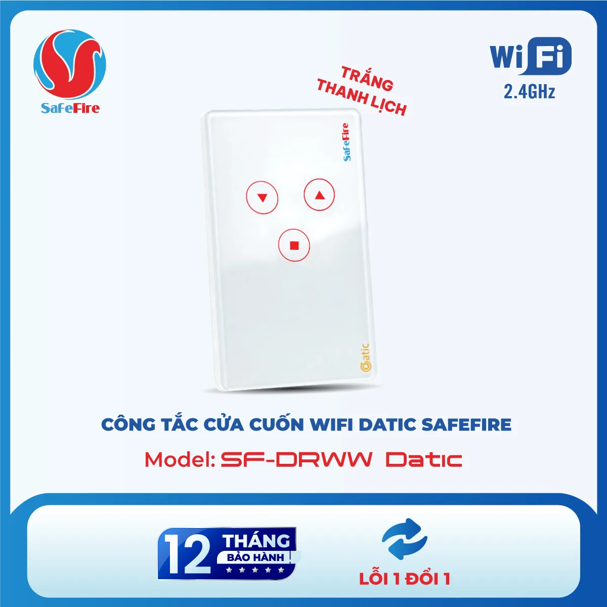 - Công tắc Cửa Cuốn Wifi Datic SafeFire: Phiên bản phổ thông, tiết kiệm chi phí, đáp ứng đầy đủ các chức năng cơ bản.