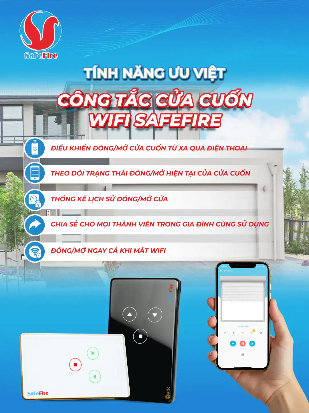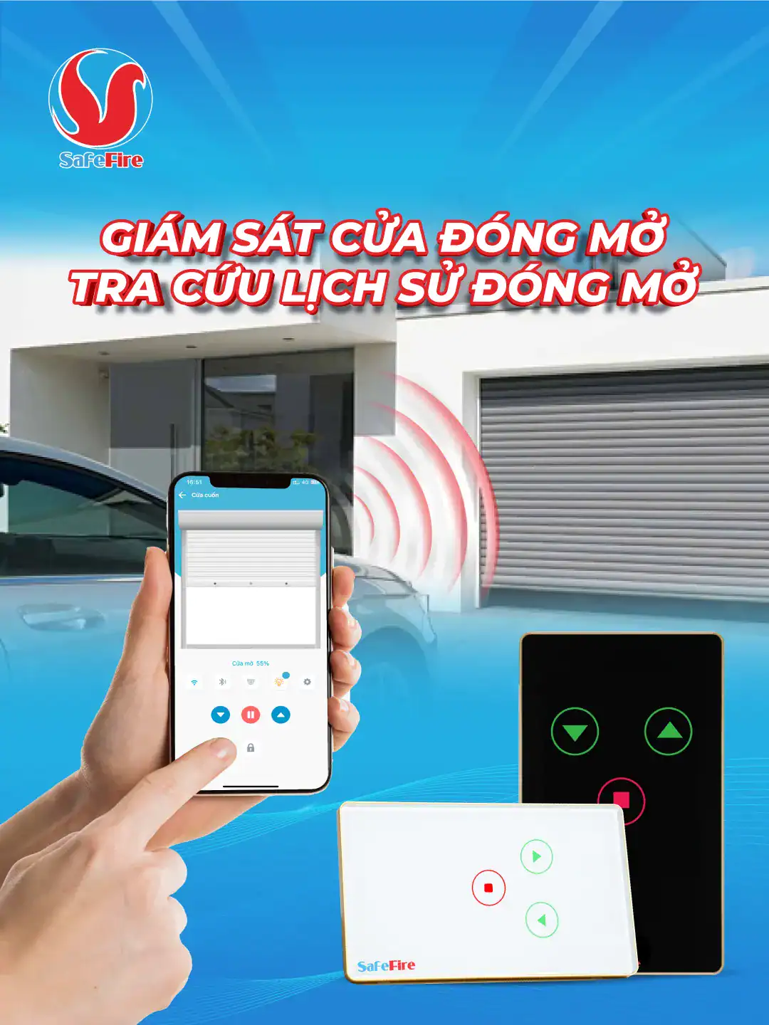Giờ đây, với công tắc cửa cuốn wifi SafeFire, bạn không còn phải loay hoay với những tình huống oái oăm nữa.