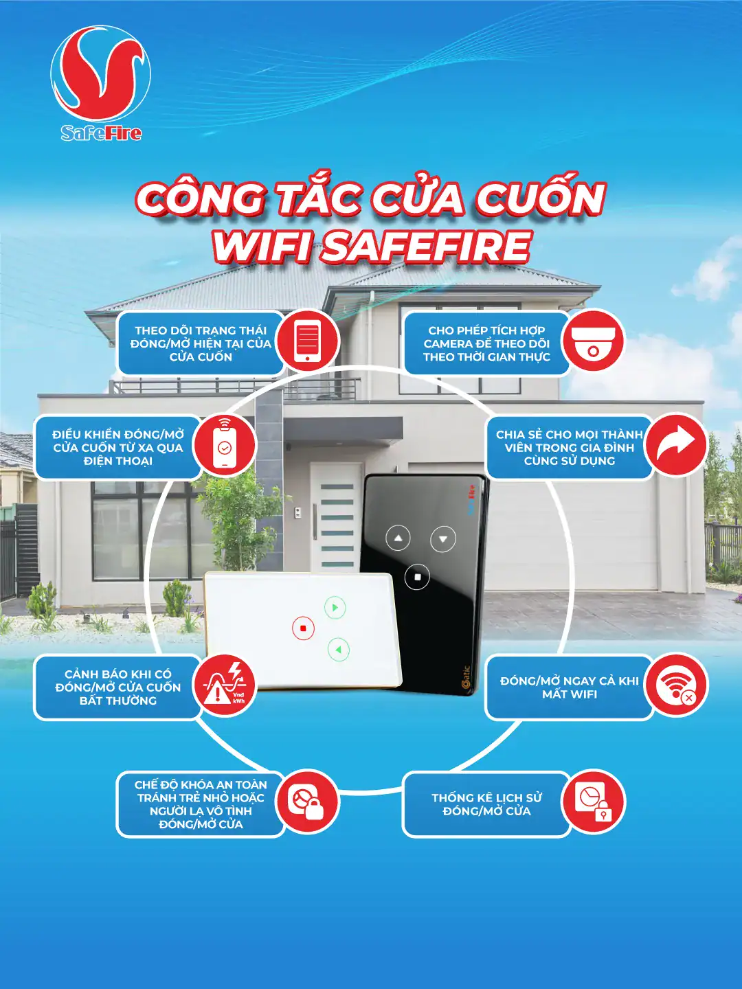 - Công tắc Cửa Cuốn wifi SafeFire: Phiên bản nâng cấp với thiết kế bền bỉ và khả năng kết nối mở rộng vượt trội.