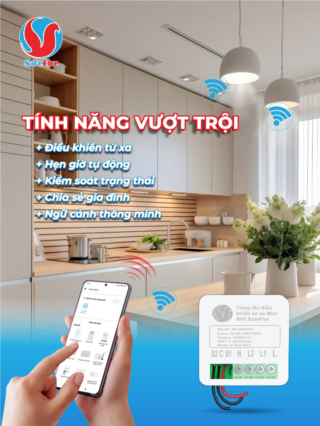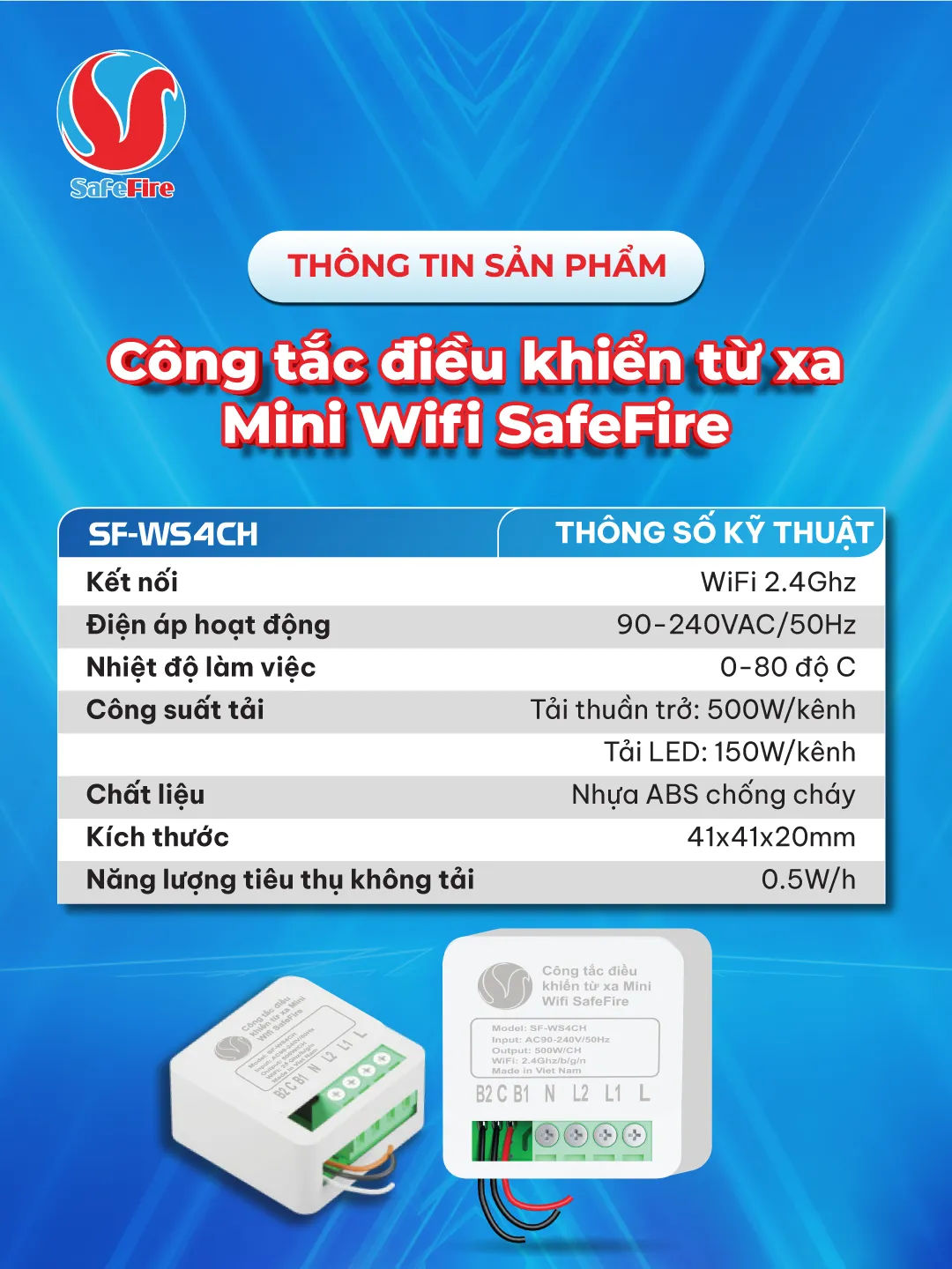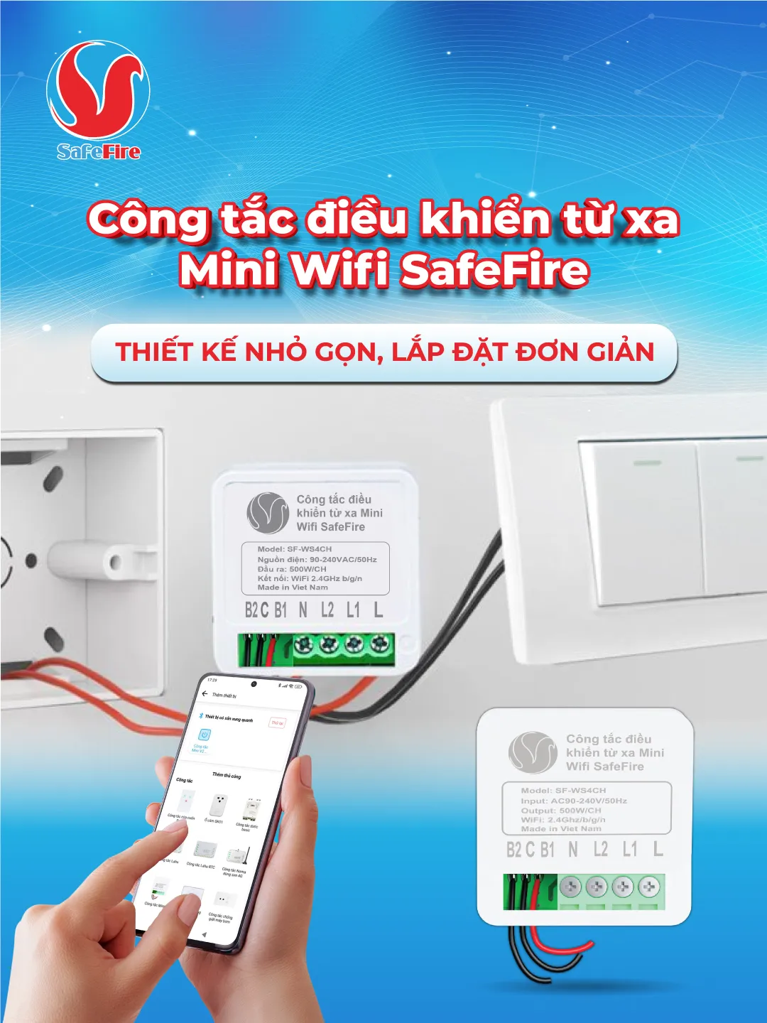 Công tắc điều khiển từ xa Wifi mini SafeFire SF-WS4CH chính là lựa chọn lý tưởng để nâng cấp ngôi nhà của bạn. Từ hệ thống chiếu sáng, quạt máy đến hệ thống tưới tiêu – tất cả đều trong tầm tay chỉ với một cú chạm trên điện thoại.
