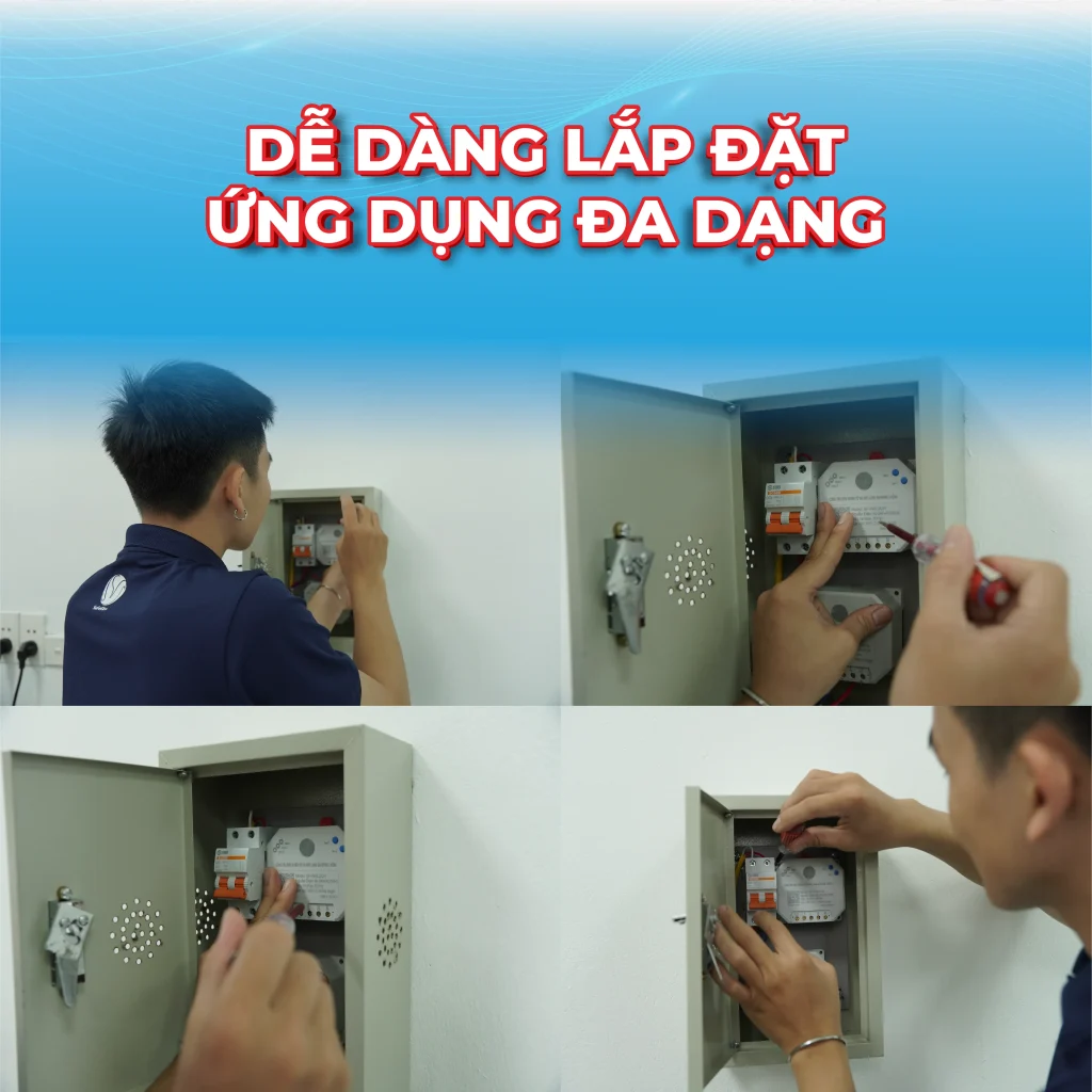 Thiết bị được thiết kế dạng lắp nổi thông minh, giúp thi công nhanh chóng, không cần can thiệp vào hệ thống điện âm tường. Chỉ với vài thao tác đơn giản, người dùng có thể lắp đặt và sử dụng ngay, tiết kiệm tối đa thời gian và chi phí lắp đặt.