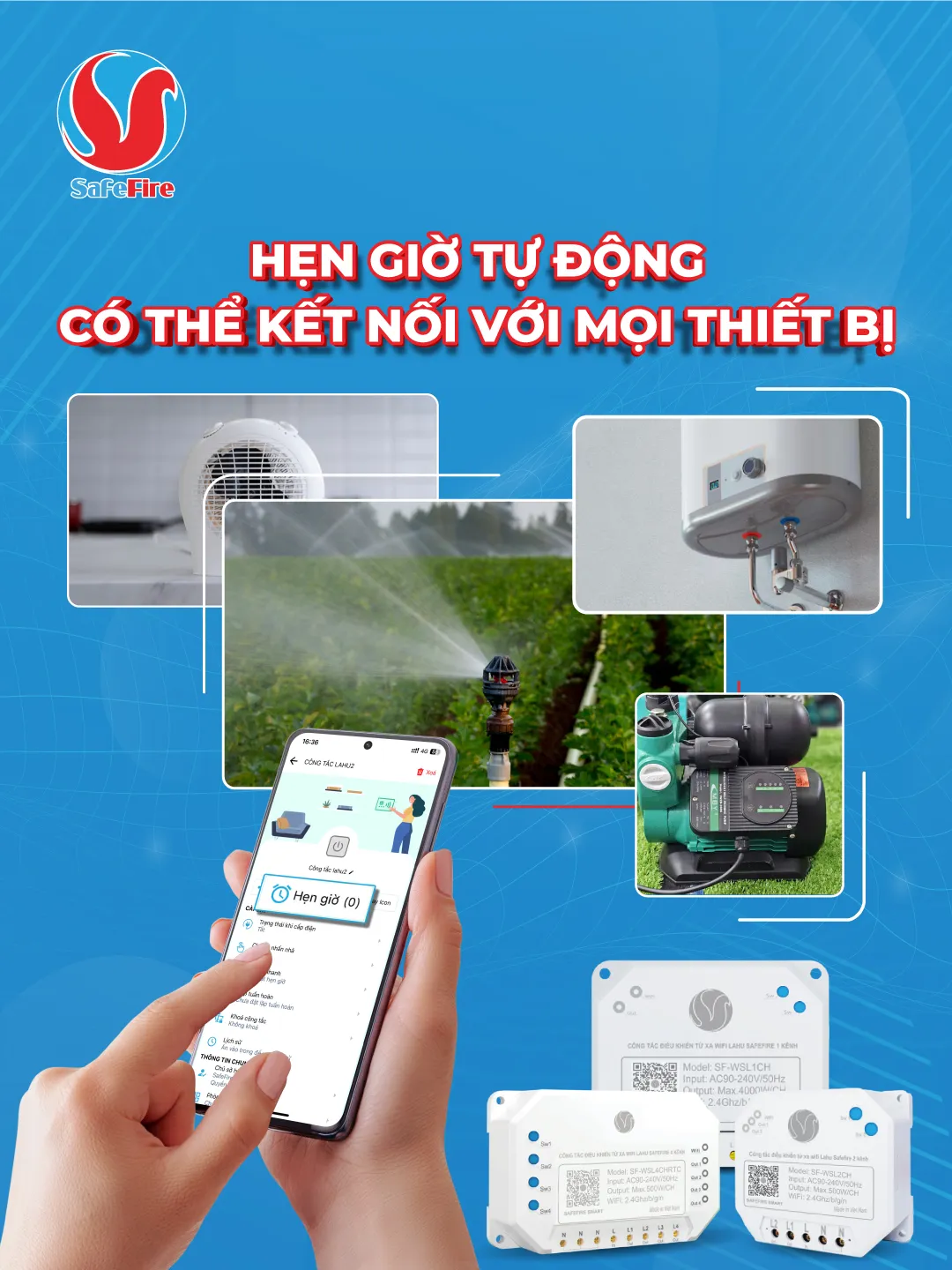 Từ nhà ở cho đến nông trại, cơ sở sản xuất… công tắc điều khiển từ xa wifi Lahu của SafeFire mang đến giải pháp linh hoạt, tiết kiệm và hiện đại. Tùy vào nhu cầu, bạn hãy chọn công tắc điều khiển từ xa wifi phù hợp nhất để tận hưởng sự tiện nghi của tính năng tự động hóa và điều khiển từ xa các công tắc, thiết bị dù ở bất cứ nơi đâu, bất kỳ lúc nào nhé!