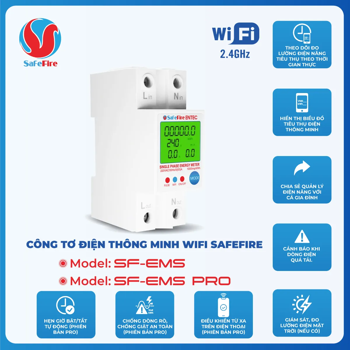 Công tơ điện thông minh wifi SafeFire SF-EMS và SafeFire SF-EMS PRO là lựa chọn lý tưởng cho bất kỳ ai muốn kiểm soát điện năng thông minh, tiết kiệm chi phí và bảo vệ an toàn cho cả hệ thống điện lẫn con người. Sản phẩm phù hợp từ hộ gia đình đến các mô hình văn phòng, homestay hay kinh doanh nhỏ lẻ.